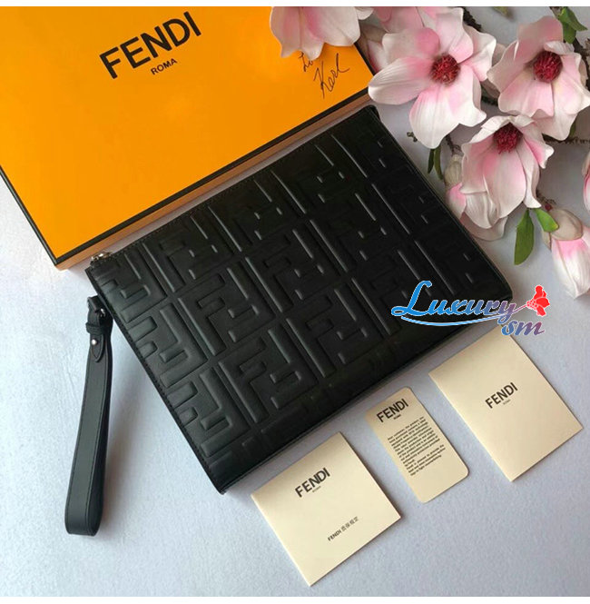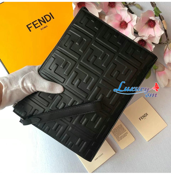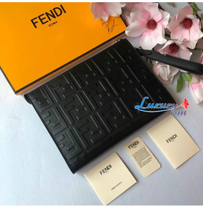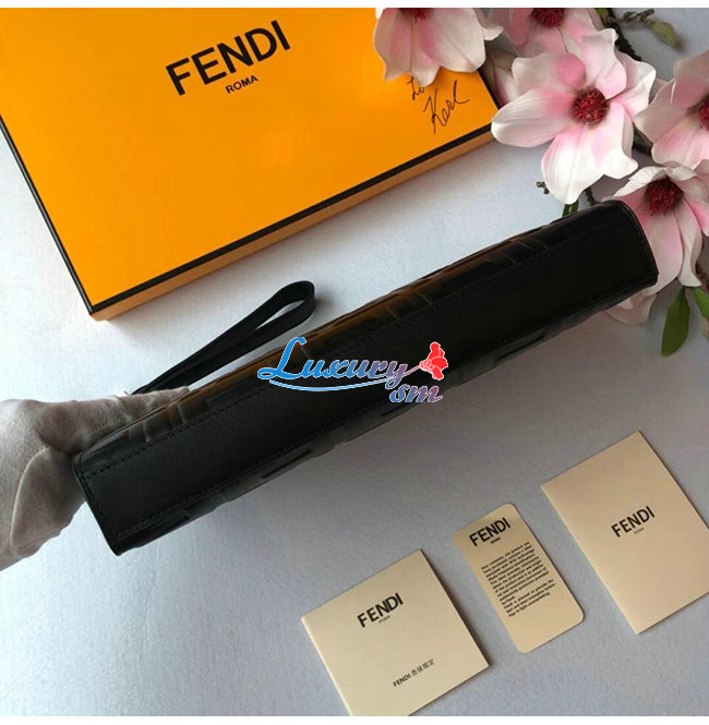 [스페셜오더]FENDI-7VA491 펜디 블랙/브라운 송아지 가죽 더블 F 디테일 플랫 파우치 가격 : 300,000원