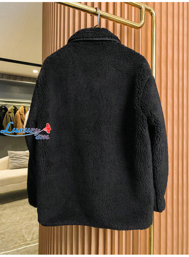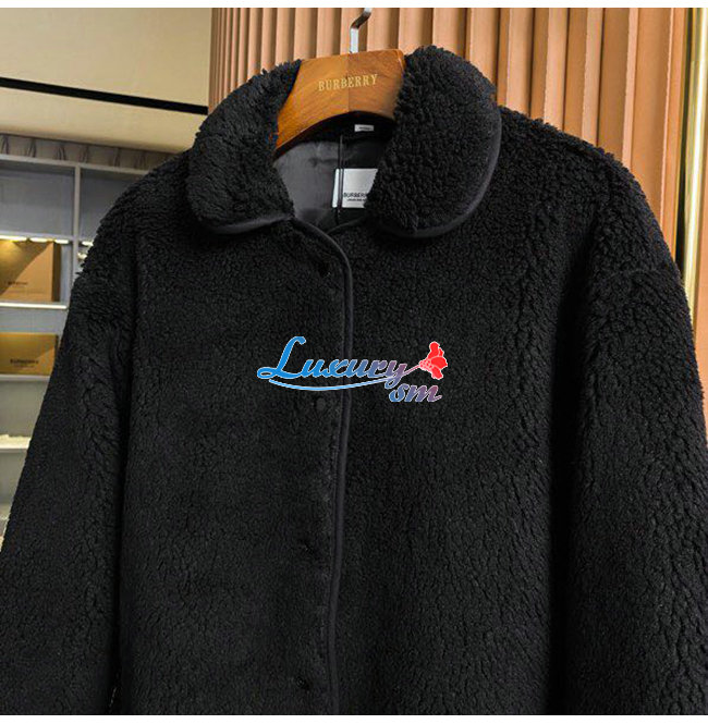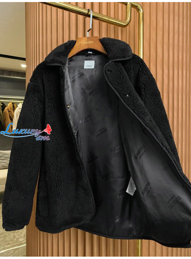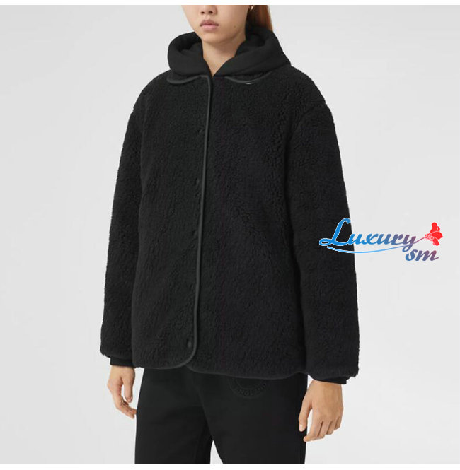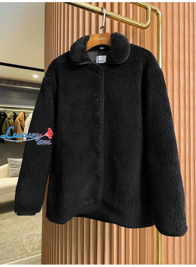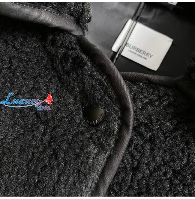 BURBERRY-80462691 버버리 블랙 울 캐시미어 블렌드 플리스 재킷