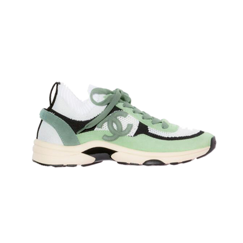 CHANEL-G38750 샤넬 그린 스웨이드 카프스킨 스니커즈 여성용