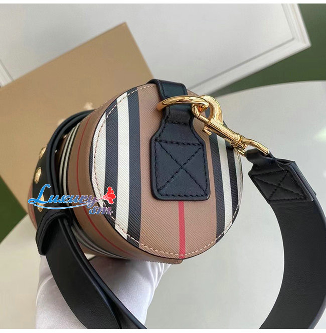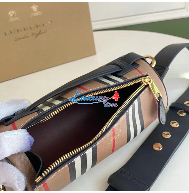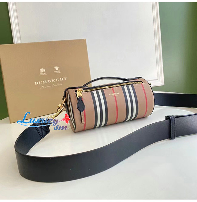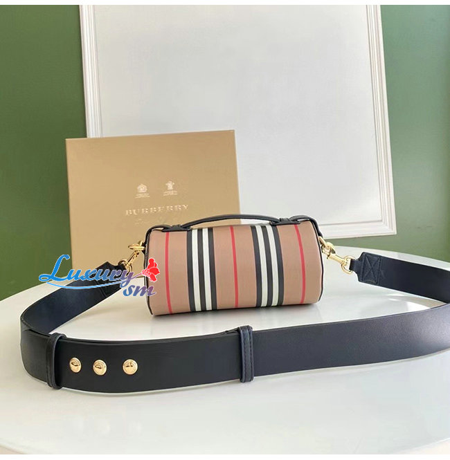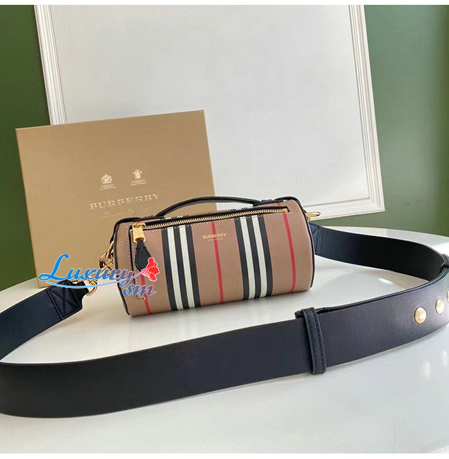 [스페셜오더]BURBERRY-80304561 버버리 베이지 아이콘 스트라이프 E-캔버스 레더 배럴 백