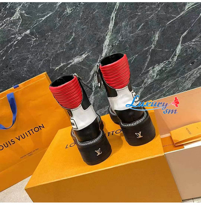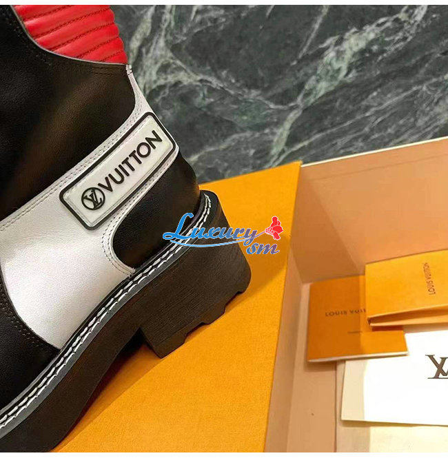 LOUIS VUITTON-1A9OCG 루이비통 블랙/레드 송아지 가죽 LV 보부르 앵클 부츠