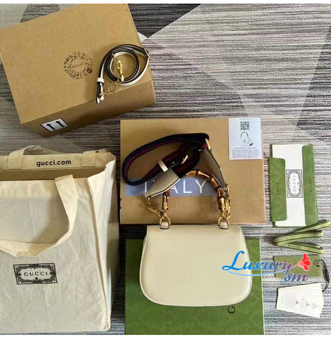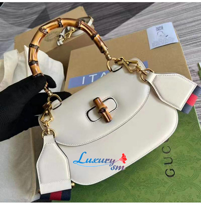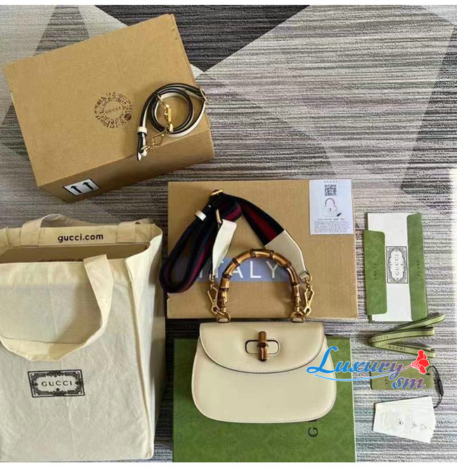 [스페셜오더]GUCCI-675797 8454 구찌 화이트 가죽 뱀부 스몰 탑 핸들백