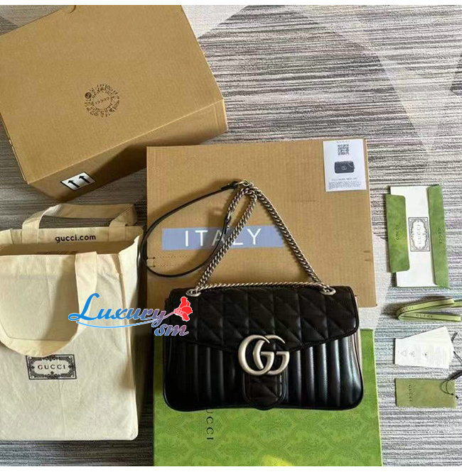 [스페셜오더]GUCCI-443496 1000 구찌 블랙 GG 마몽 미디엄 마틀라세 숄더백