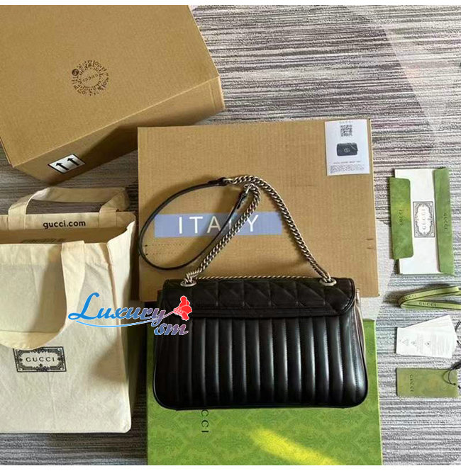 [스페셜오더]GUCCI-443496 1000 구찌 GG Marmont 마몽 마틀라세 미디엄 스트럭처드 체인 숄더백 블랙