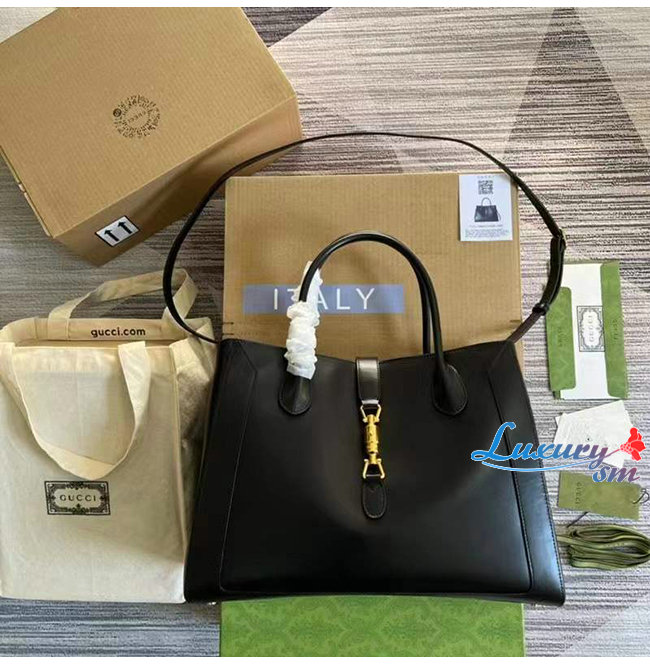 [스페셜오더]GUCCI-649015 1000 구찌 블랙 가죽 재키 1961 라지 토트백