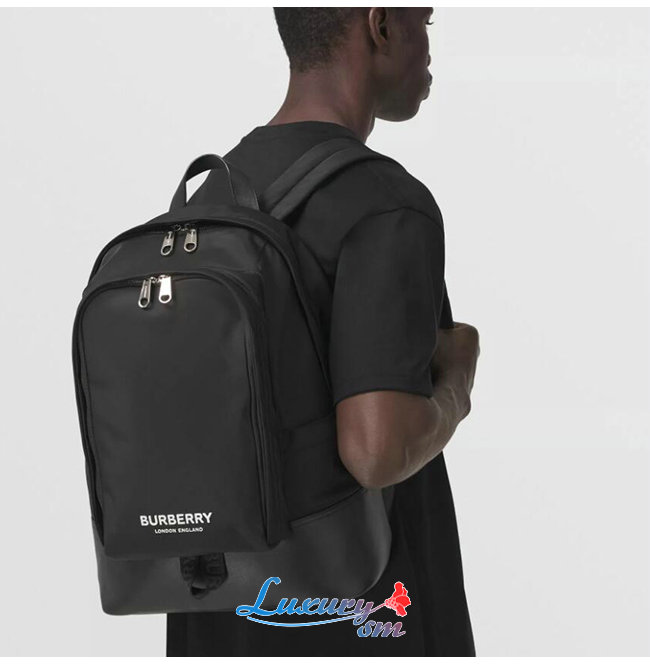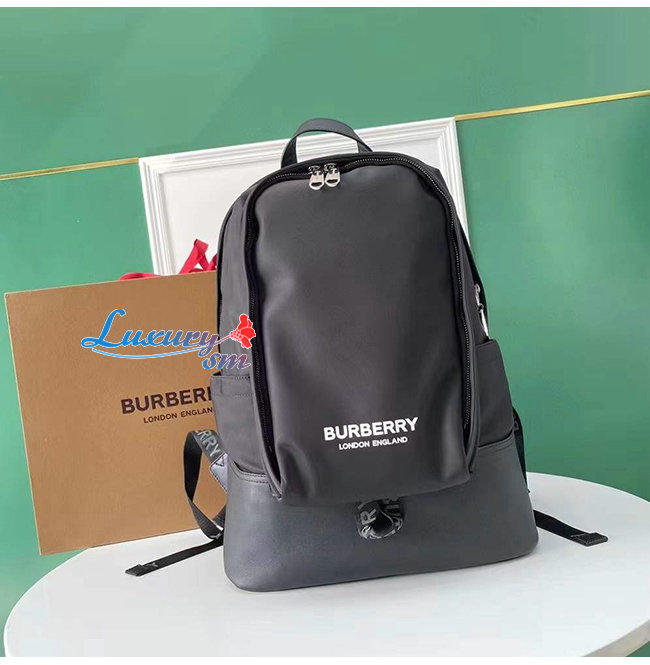 [스페셜오더]BURBERRY-80472921 버버리 블랙 그라지 로고 프린트 ECONYL 레더 백팩