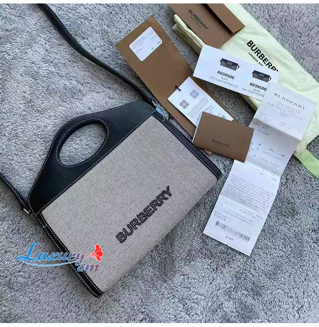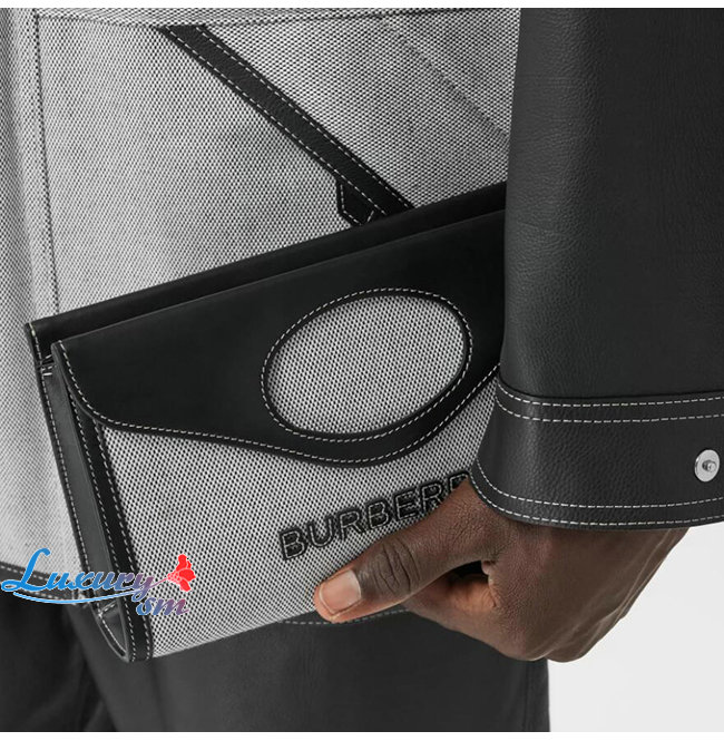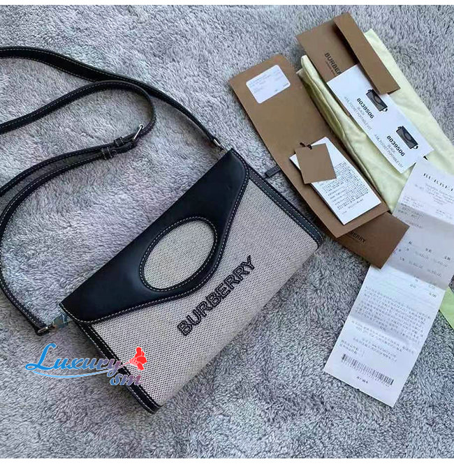[스페셜오더]BURBERRY-80395061 버버리 블랙/그레이 캔버스 레더 폴드오버 포켓 백