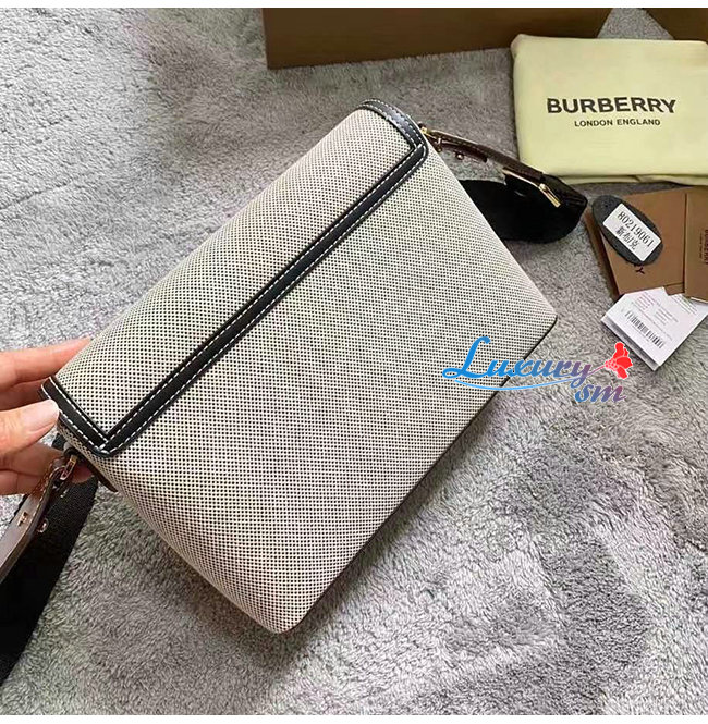 [스페셜오더]BURBERRY-80557481 버버리 블랙 호스페리 모티프 캔버스 노트 크로스바디 백
