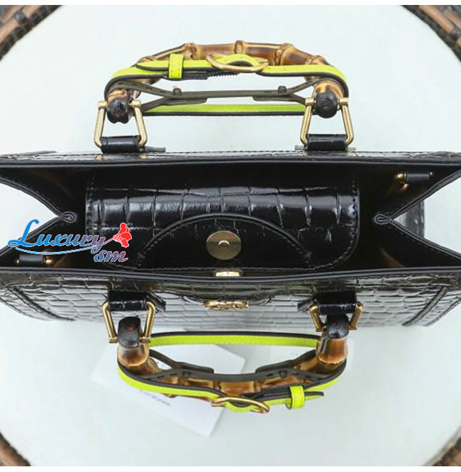 [스페셜오더]GUCCI-660195 1175 구찌 블랙 크로커다일 가죽 다이애나 뱀부 핸들 스몰 토트백