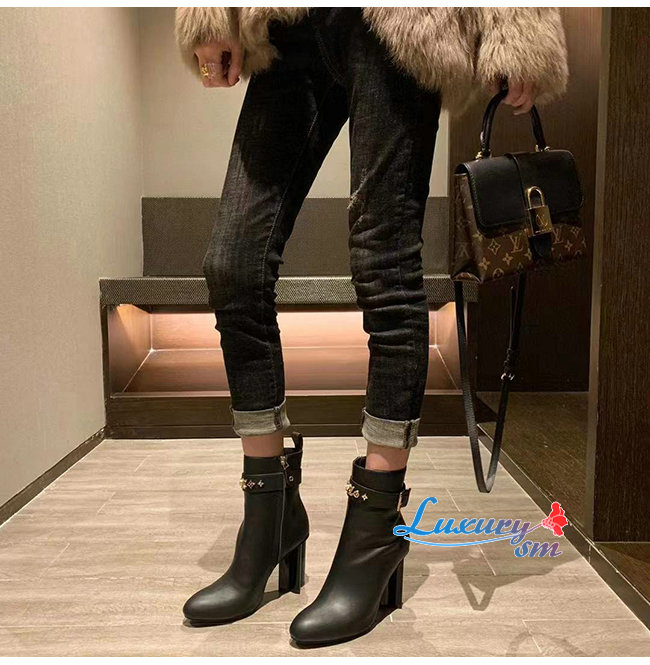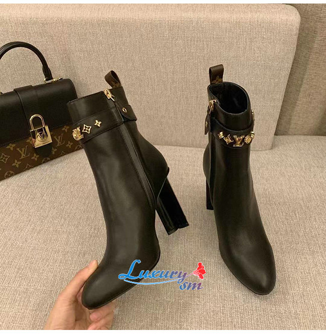 LOUIS VUITTON-1A957X 루이비통 블랙 송아지 가죽 실루엣 앵클 부츠