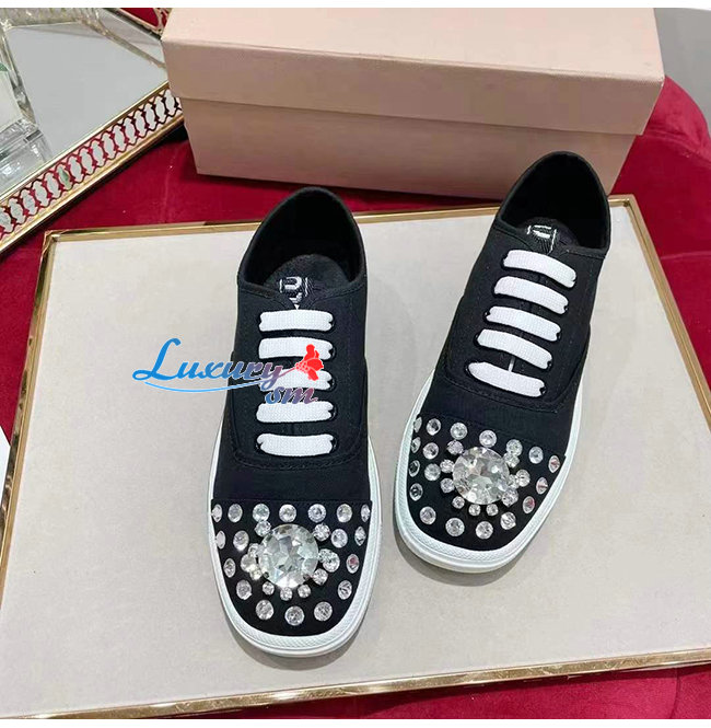 MIUMIU-5E450D 미우미우 블랙 코튼 개버딘 스니커즈