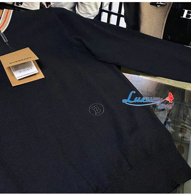 BURBERRY-80484281 버버리 블랙 스트라이프 디테일 캐시미어 스웨터