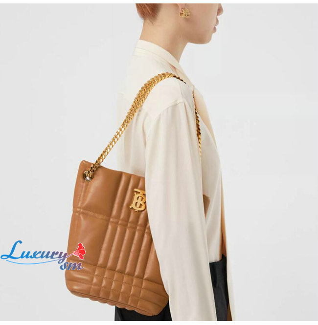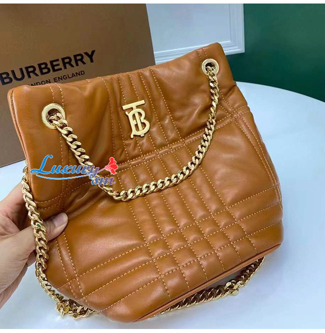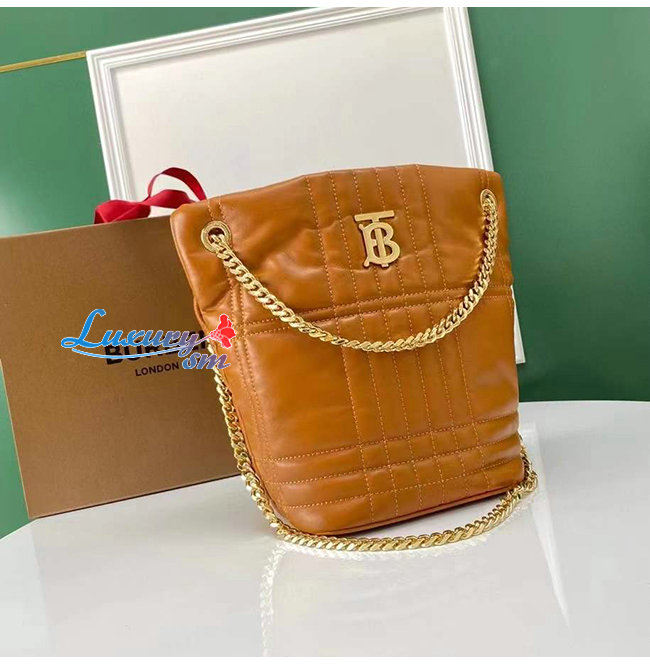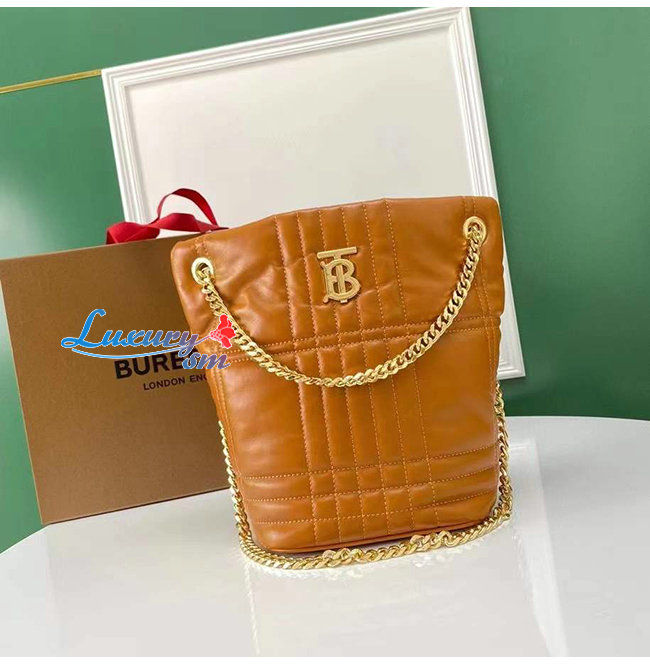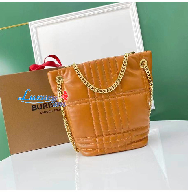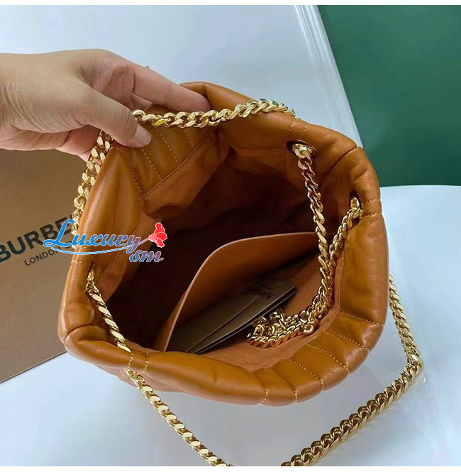 [스페셜오더]BURBERRY-80462551 버버리 브라운 스몰 퀼팅 램스킨 롤라 버킷 백
