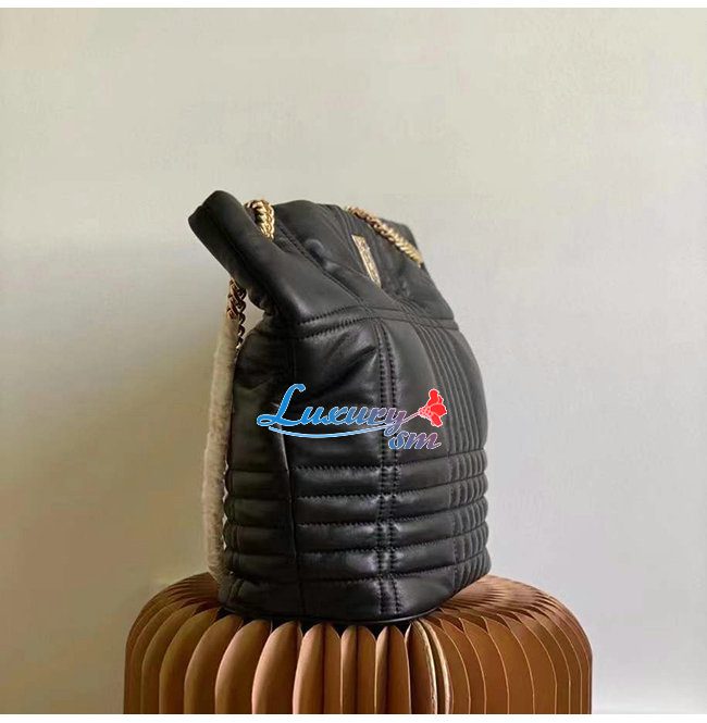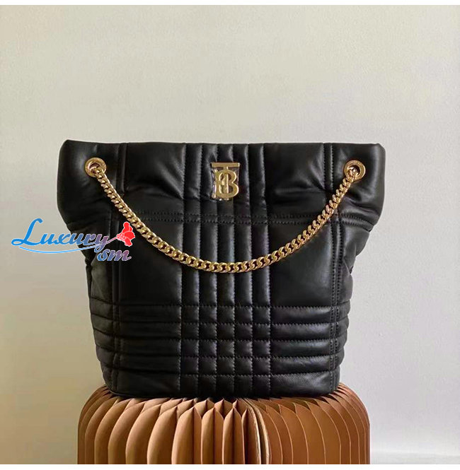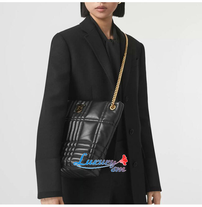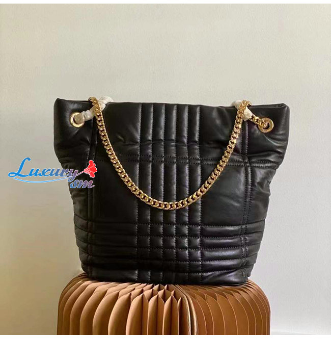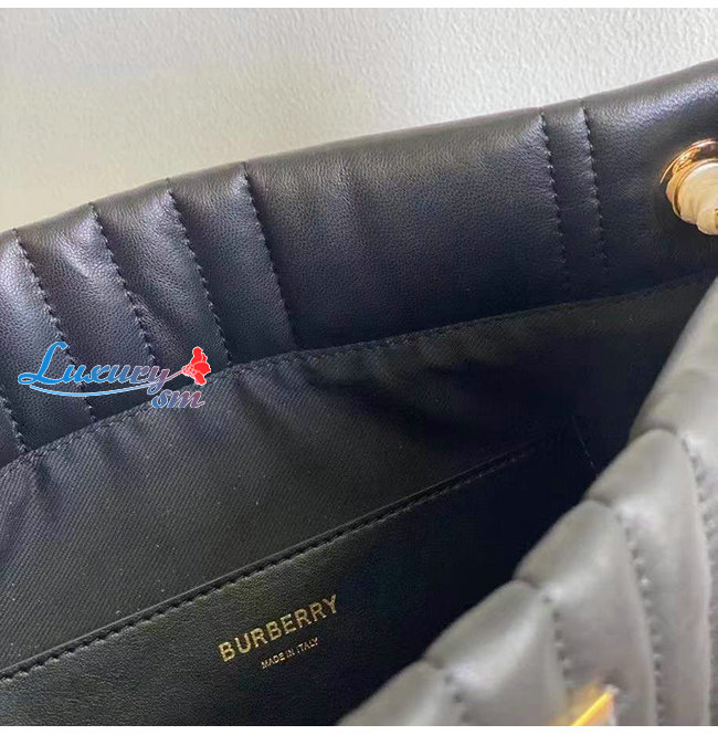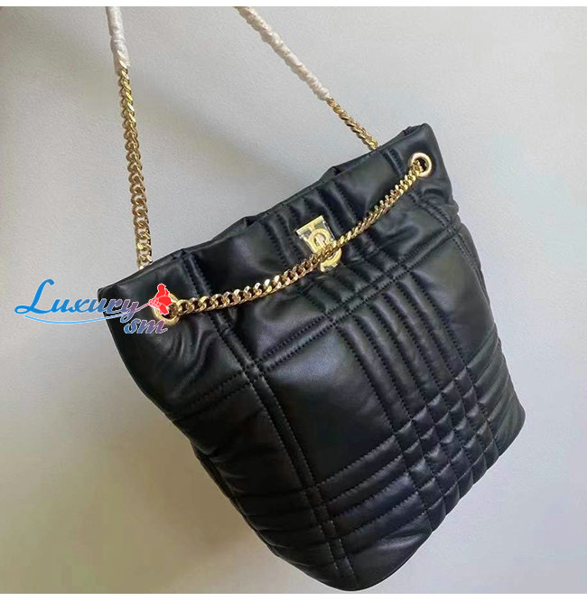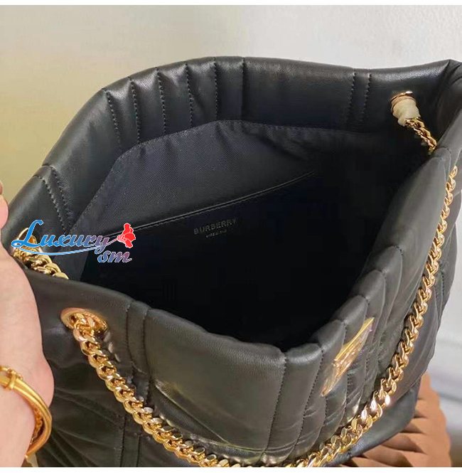 [스페셜오더]BURBERRY-80462371 버버리 블랙 미디엄 퀼팅 램스킨 롤라 버킷 백