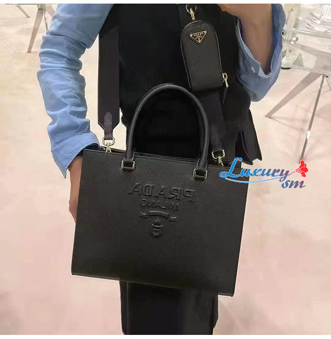 [스페셜오더]PRADA-1BA337 프라다 블랙 미디엄 사피아노 가죽 핸드백