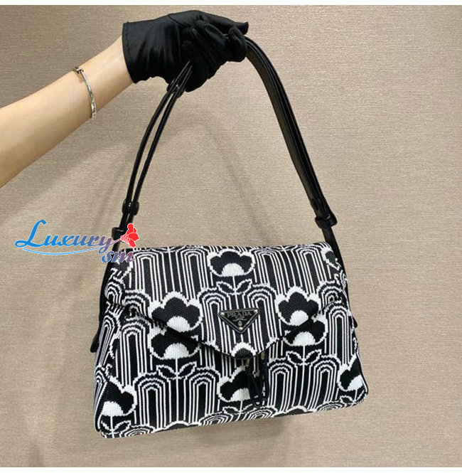 [스페셜오더]PRADA-1BC165 프라다 화이트/블랙 자카드 니트 시뇨 백