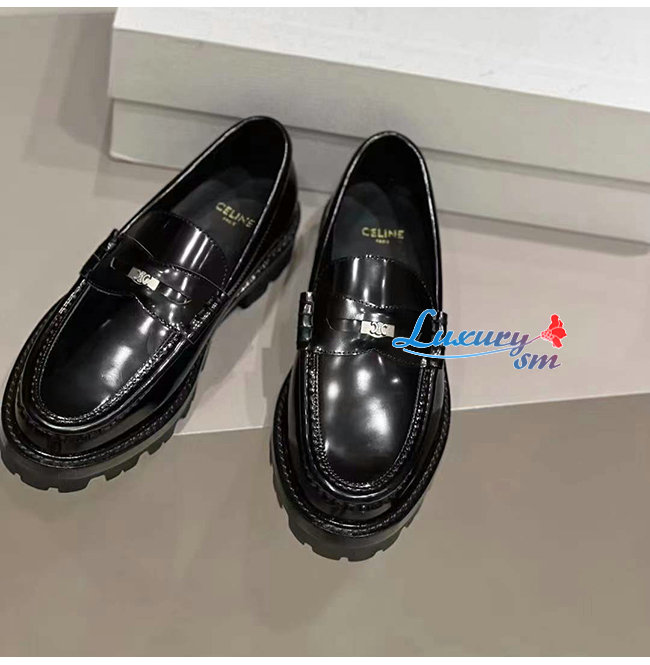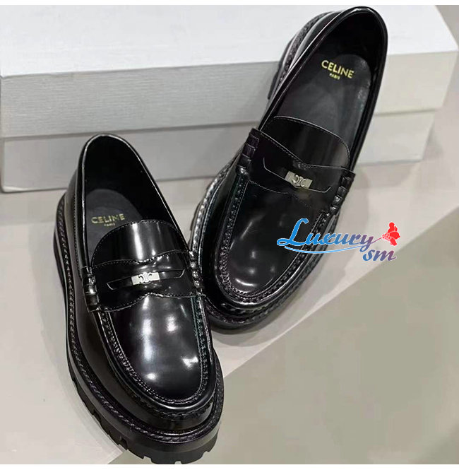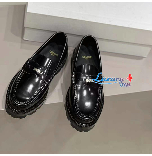 CELINE-345823 셀린느 블랙 소가죽 MARGARET PENNY CHUNKY 로퍼 여성용