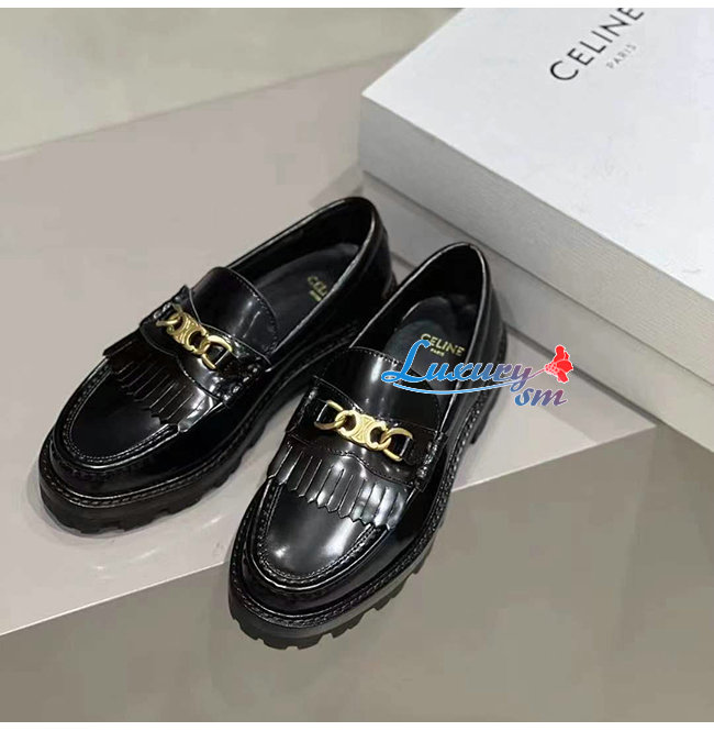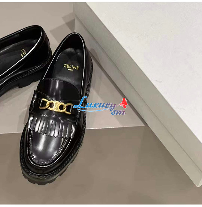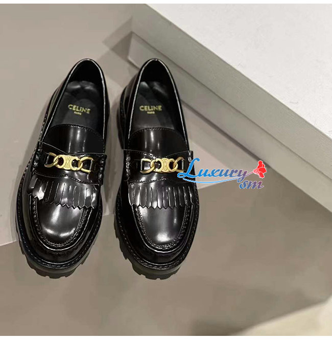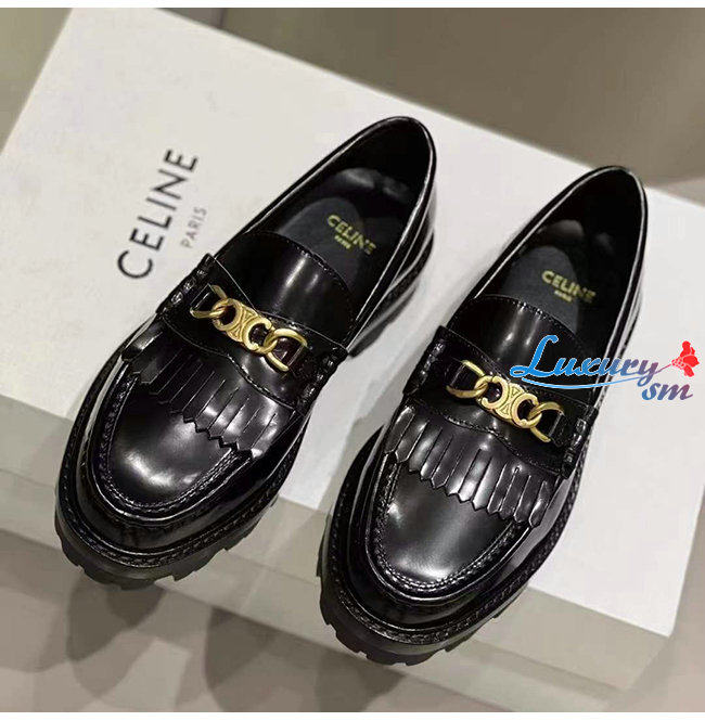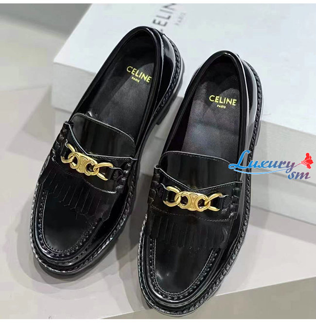 CELINE-344893 셀린느 블랙 소가죽 트리오페 체인 MARGARET 로퍼 여성용