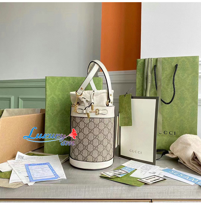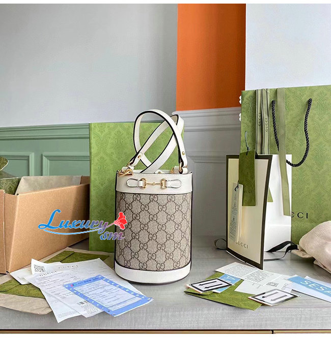 [스페셜오더]GUCCI-637115 8563 구찌 화이트 GG 수프림 1955 홀스빗 스몰 버킷백