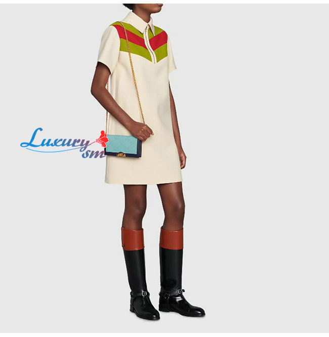 라이트 블루 GG 레더 및 다크 블루 트리밍