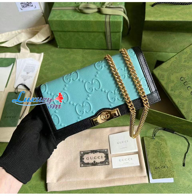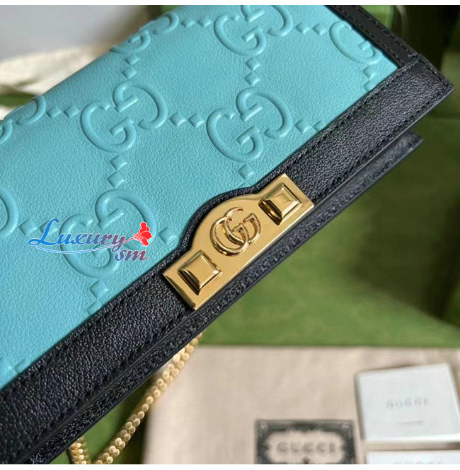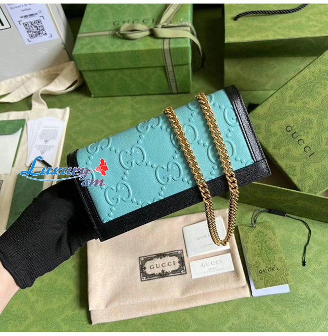 [스페셜오더]GUCCI-676155 4967 구찌 라이트 블루 체인 GG 지갑