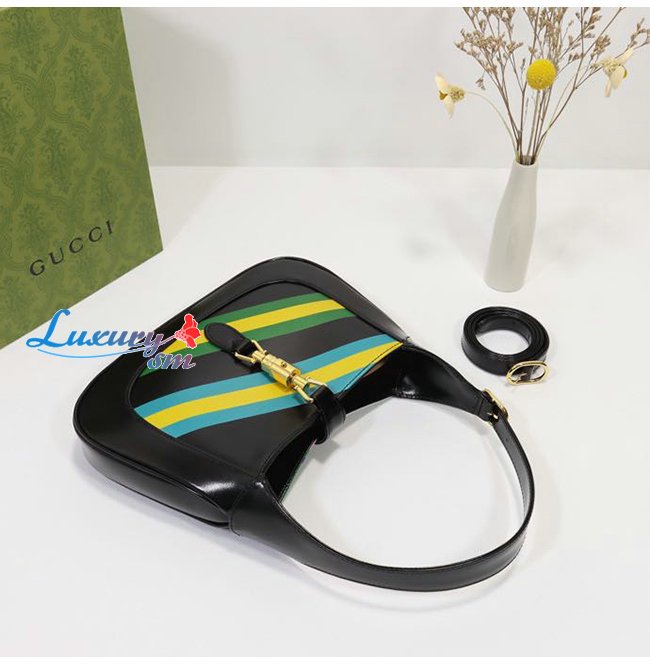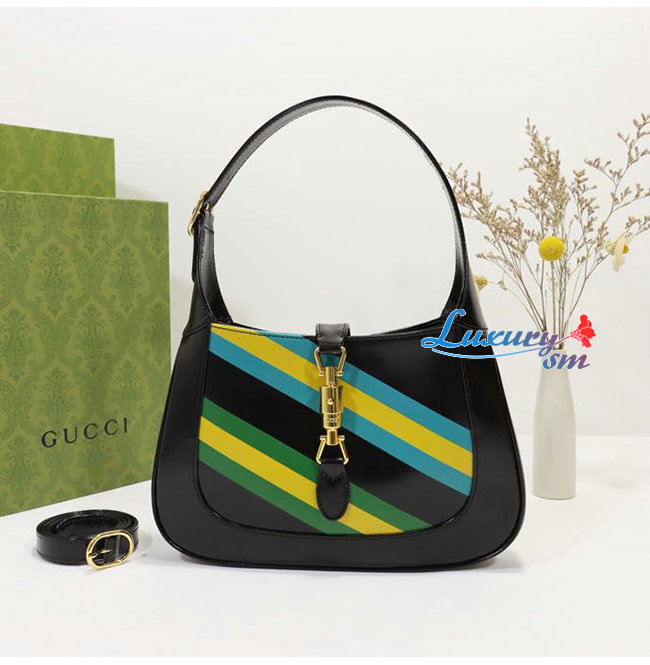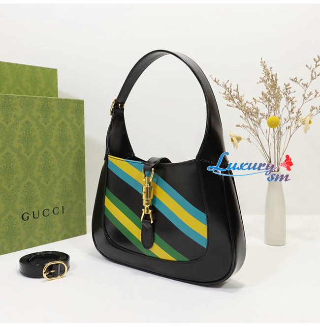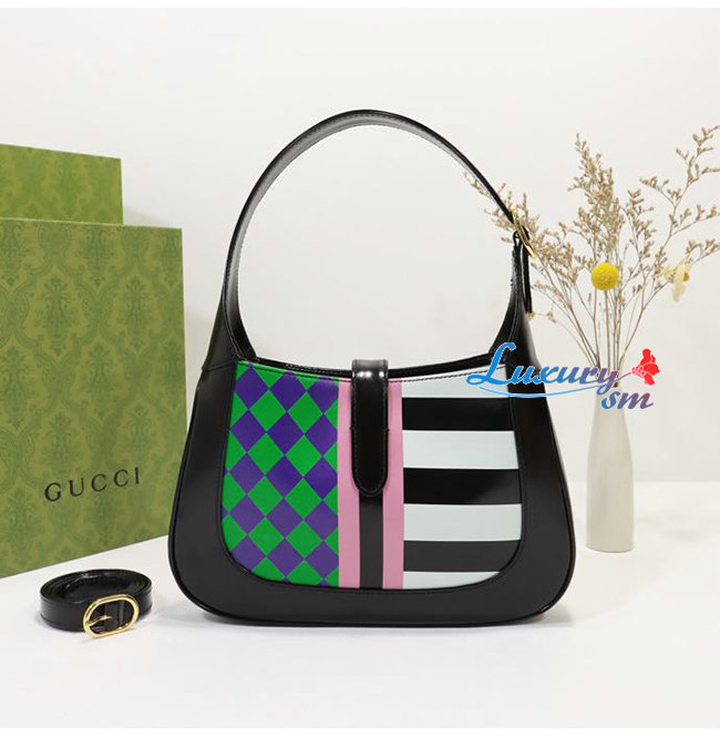 [스페셜오더]GUCCI-636709 1058 구찌 블랙 가죽 기하학적 프린트 재키 1961 스몰 호보백