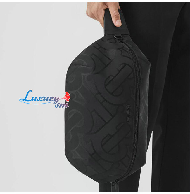 BURBERRY-80490921 버버리 블랙 라지 모노그램 리사이클 폴리에스테르 쏘니 범 백