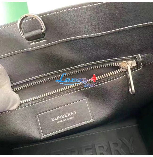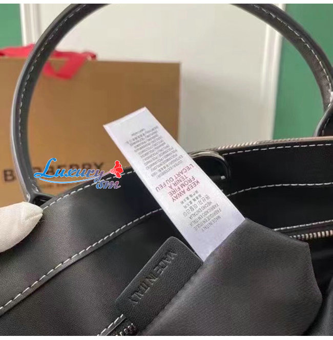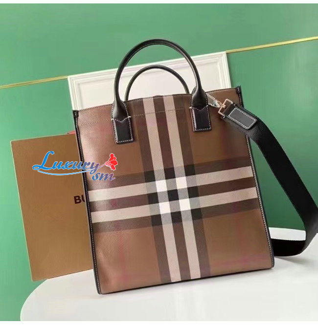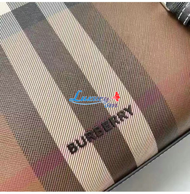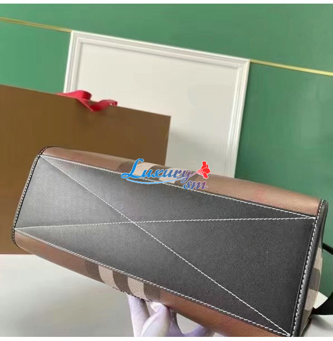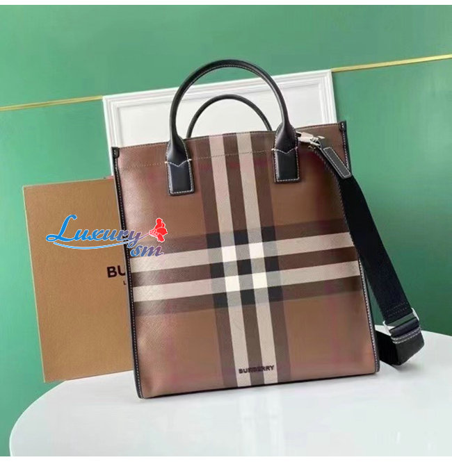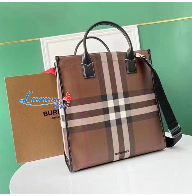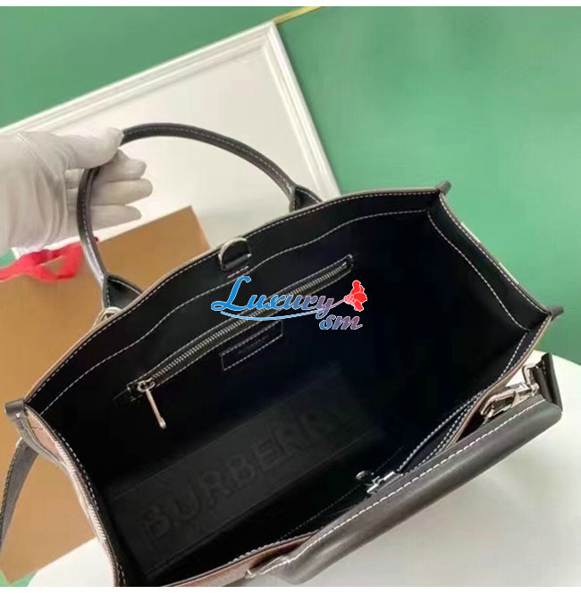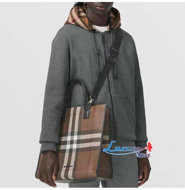 BURBERRY-80491171 버버리 다크 버치 브라운 체크 E-캔버스 레더 토트