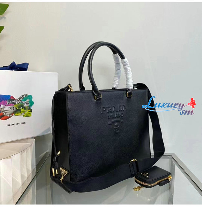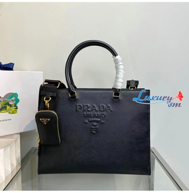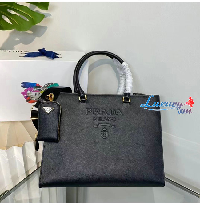 [스페셜오더]PRADA-1BA335 프라다 블랙 사피아노 가죽 대형 핸드백