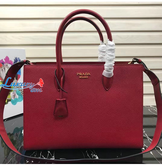 [스페셜오더]PRADA-1BA153 프라다 레드 사피아노 가죽 라지 탑핸들백