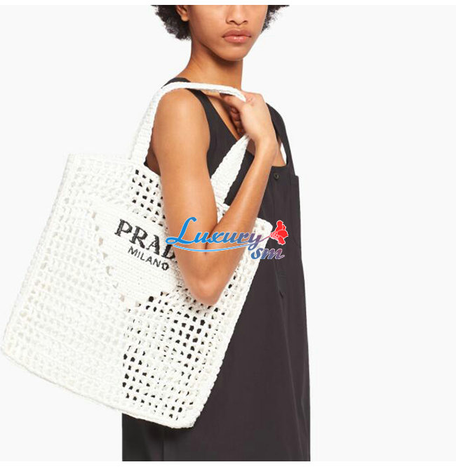 [스페셜오더]PRADA-1BG393 프라다 화이트 라피아 토트 백