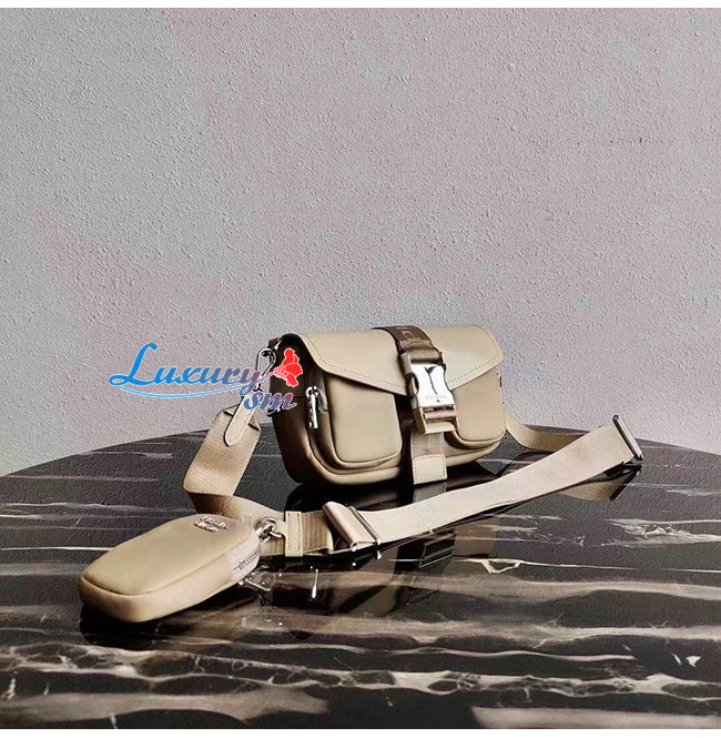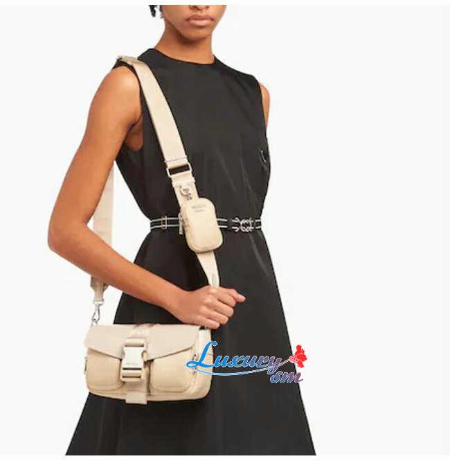 [스페셜오더]PRADA-1BD295 프라다 베이지 나일론 브러시드 가죽 포켓 숄더 백