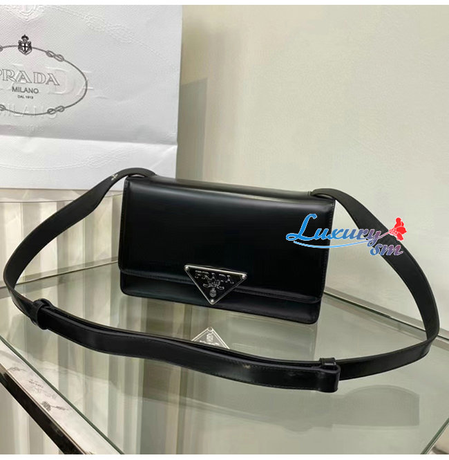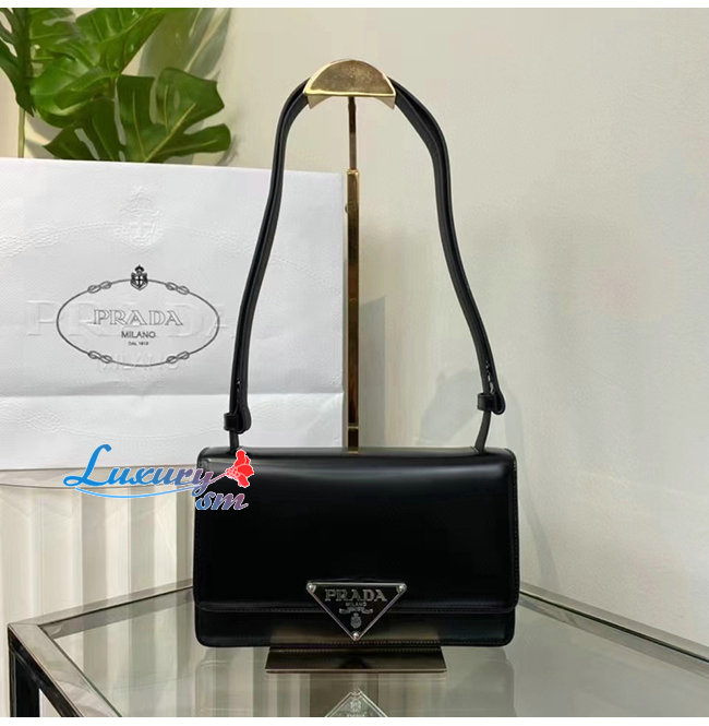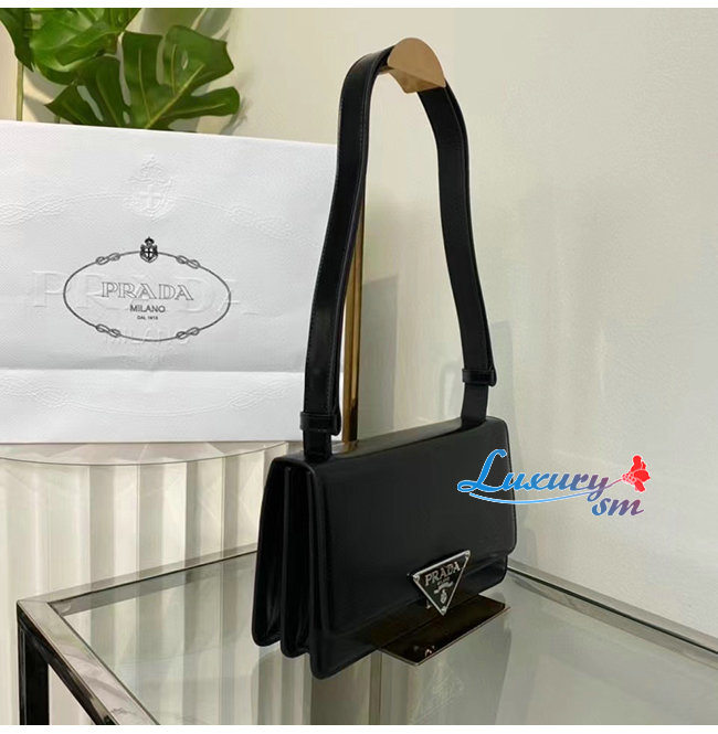 [스페셜오더]PRAD*-1BD321 프라다 블랙 엠블럼 브러시드 가죽 숄더 백
