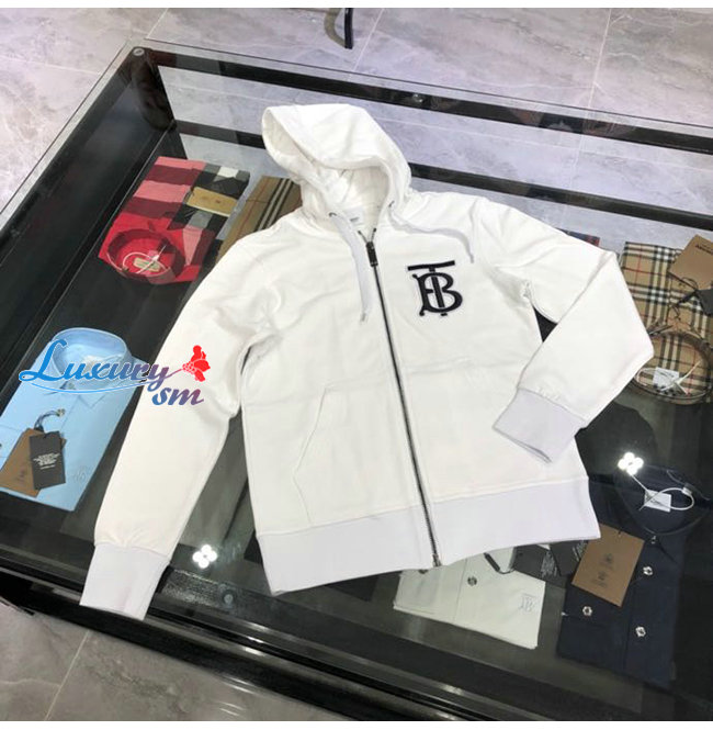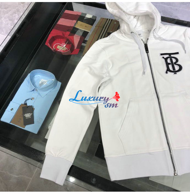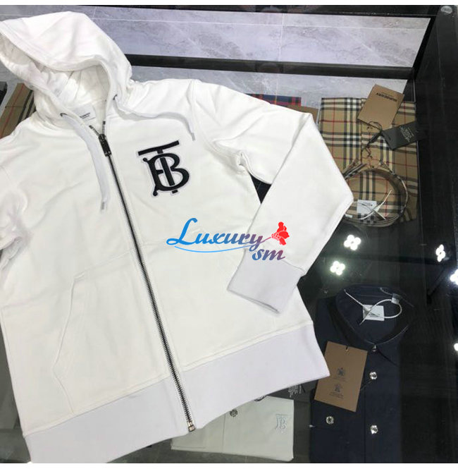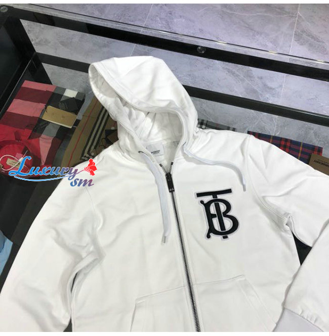 BURBERRY-02137 버버리 화이트 코튼 TB 로고 아플리케 장식 후드 쟈켓 남성용
