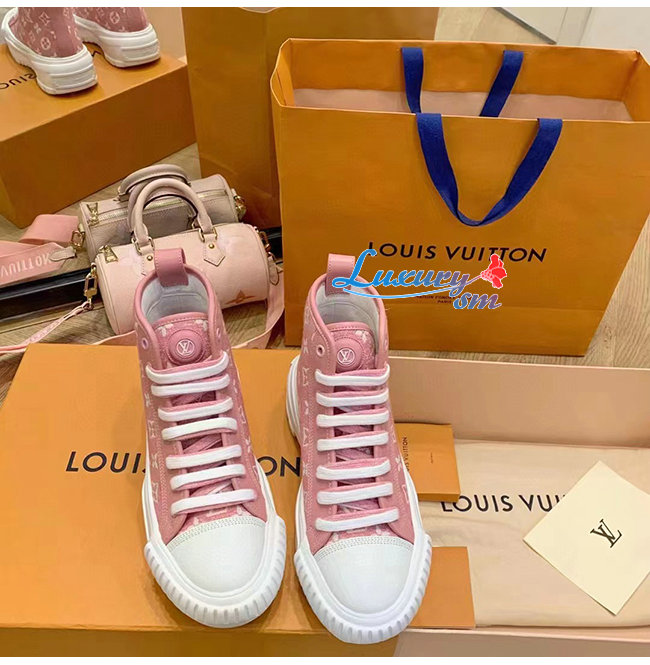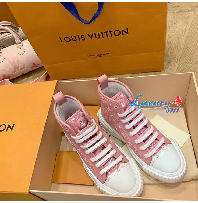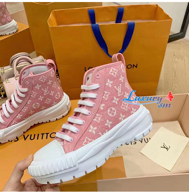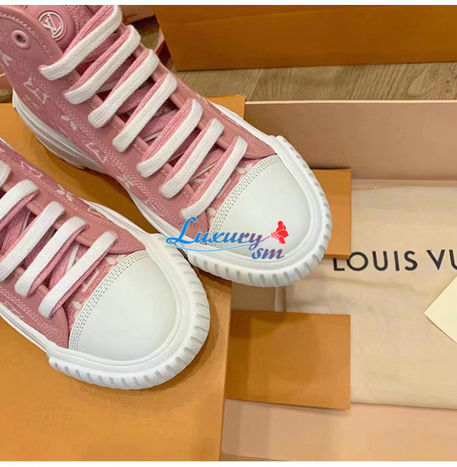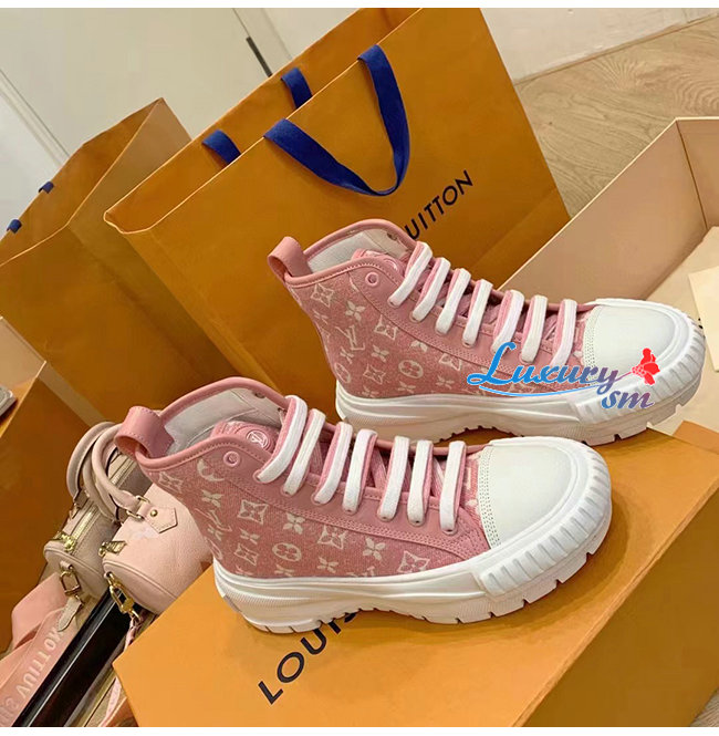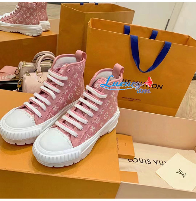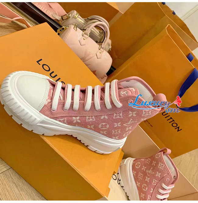 LOUIS VUITTON-1A9S1P 루이비통 핑크 모노그램 데님 LV 스쿼드 스니커 부츠