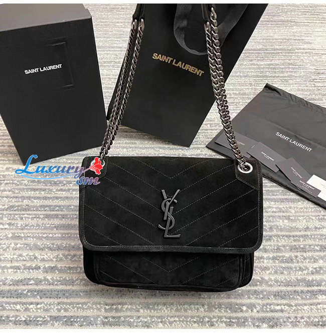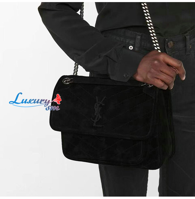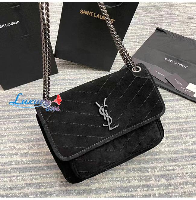 [스페셜오더]SAINT LAURENT-633158 생 로랑 블랙 스웨이드 니키 NIKI 미디엄 백