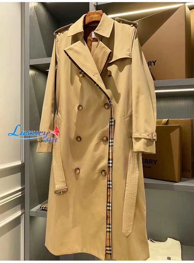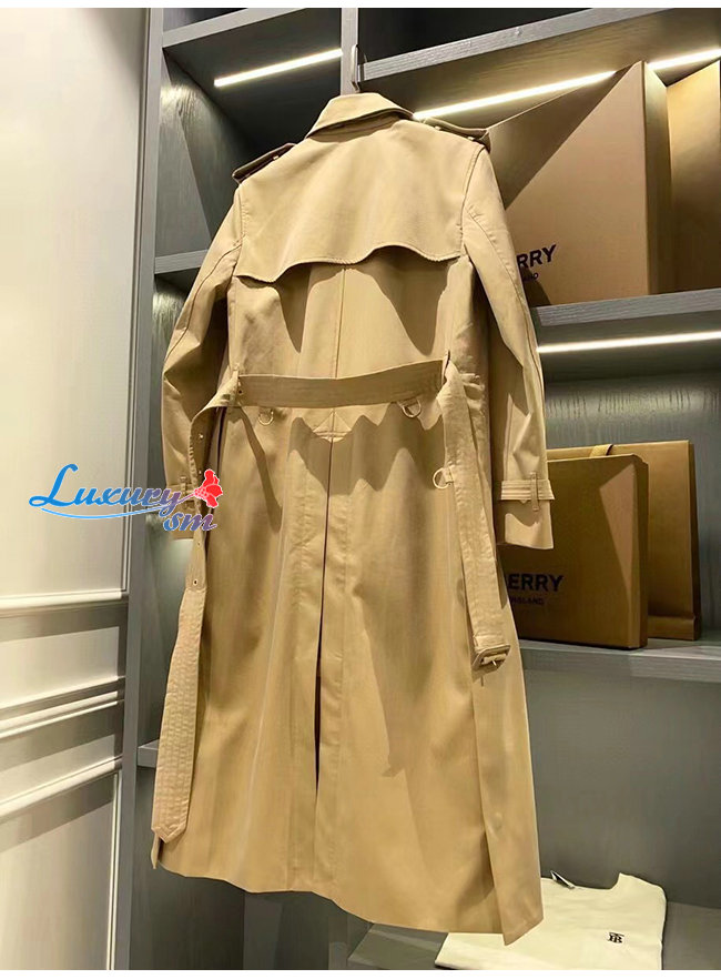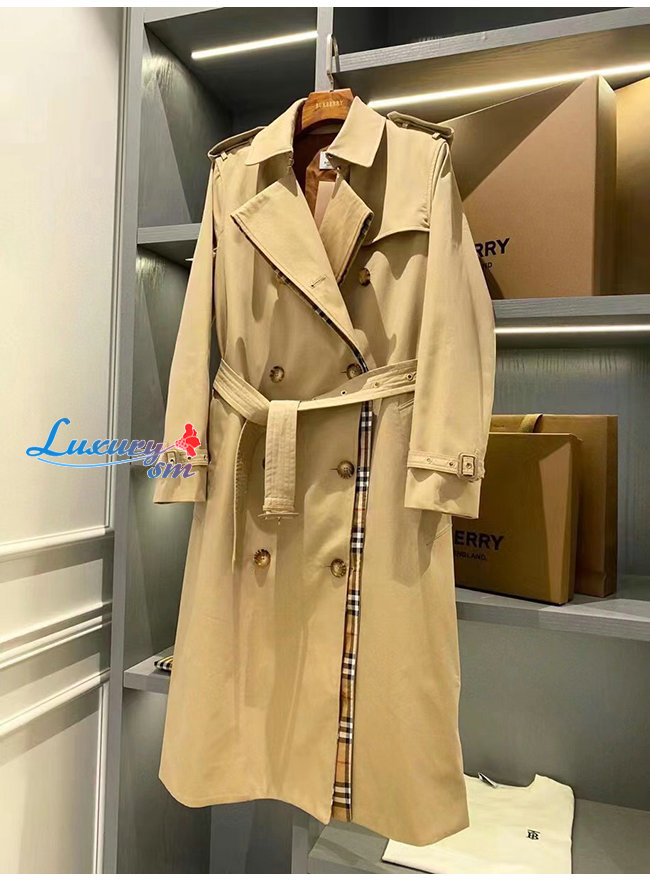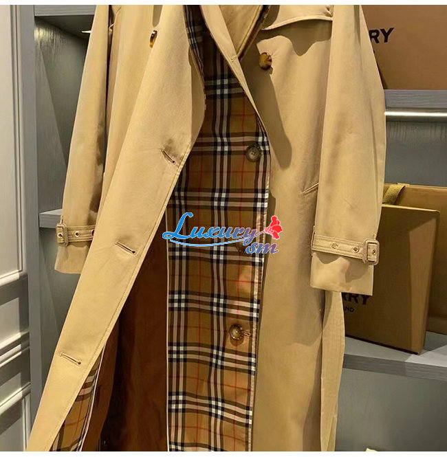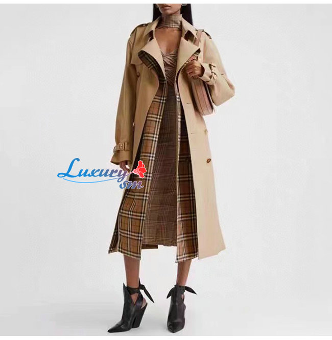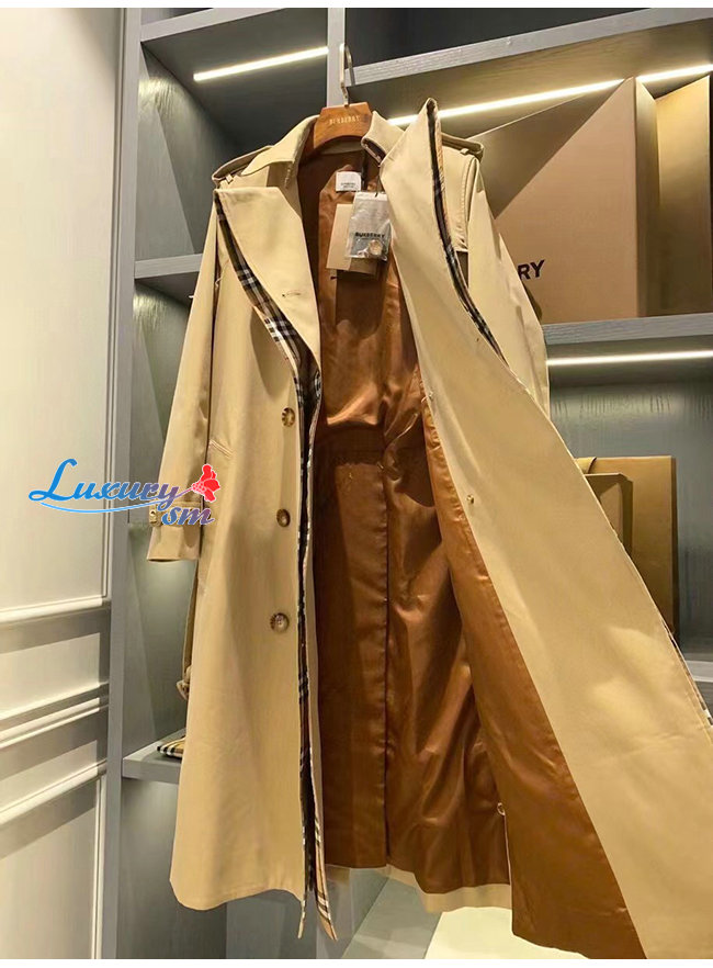 BURBER**-02267 버버리 허니 코튼 체크 무늬 트렌치코트 여성용