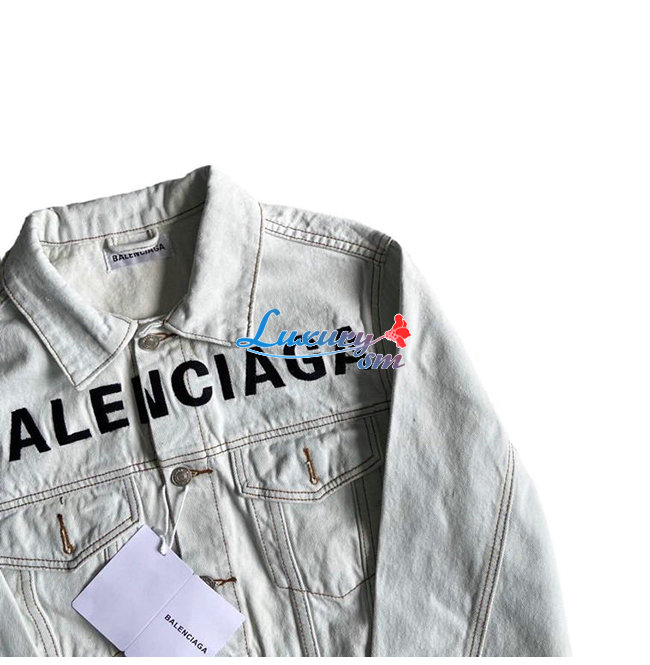 BALENCIA**-03131 발렌시아가 라이트 그레이 BALENCIAGA 아플리케 장식 데님 셔츠 남여공용