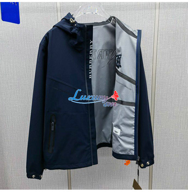 BURBER**-03118 버버리 화이트 TB 로고 아플리케 장식 바람막이 후드 재킷 남성용