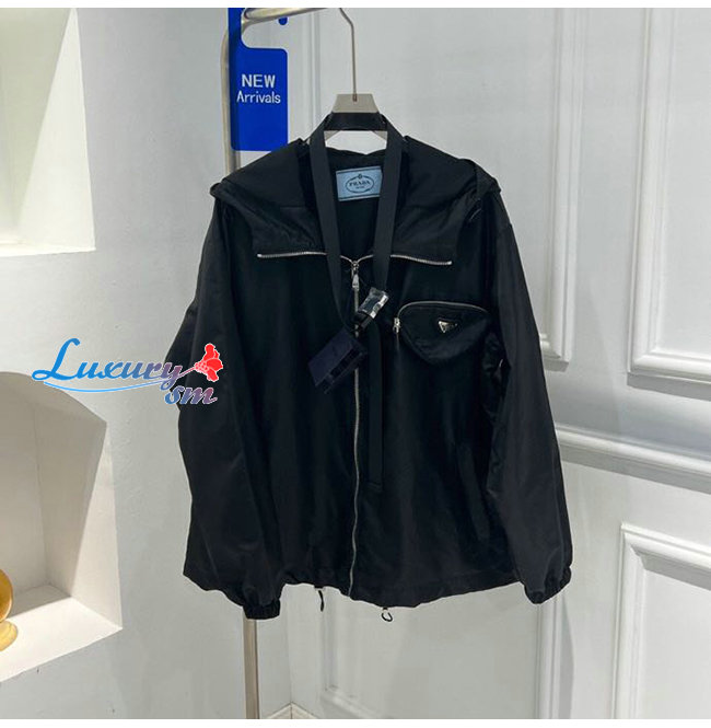 PRAD*-291964 프라다 블랙 리나일론 바람막이 후드 블루종 재킷