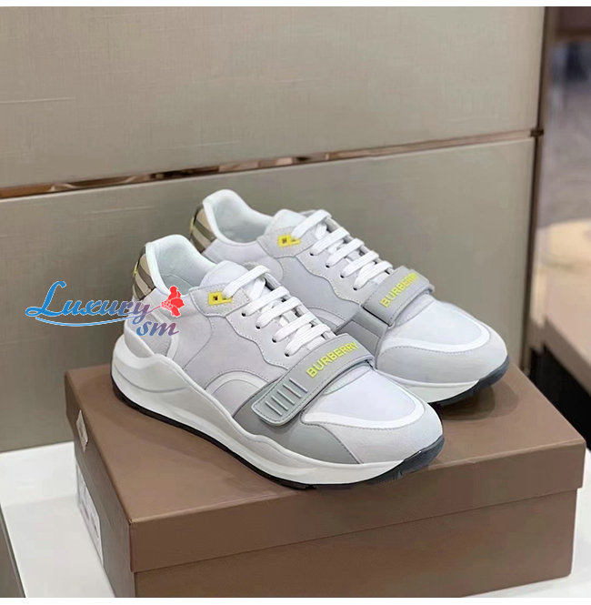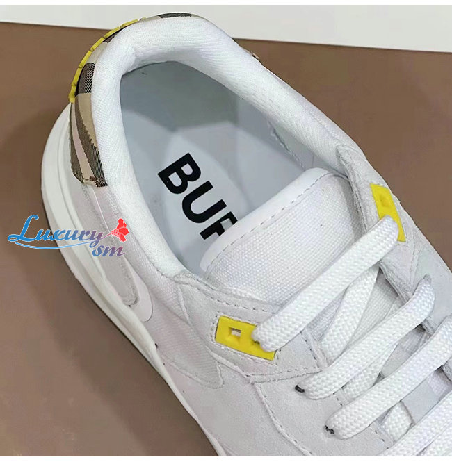 BURBER**-80372581 버버리 화이트 스웨이드 빈티지 체크 레더 스니커즈