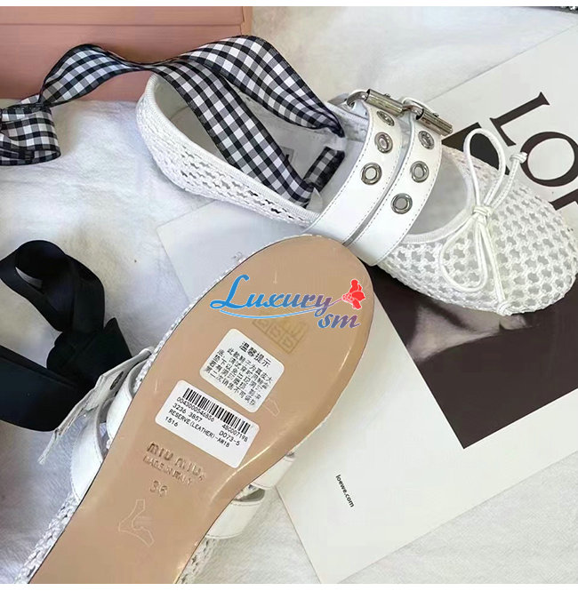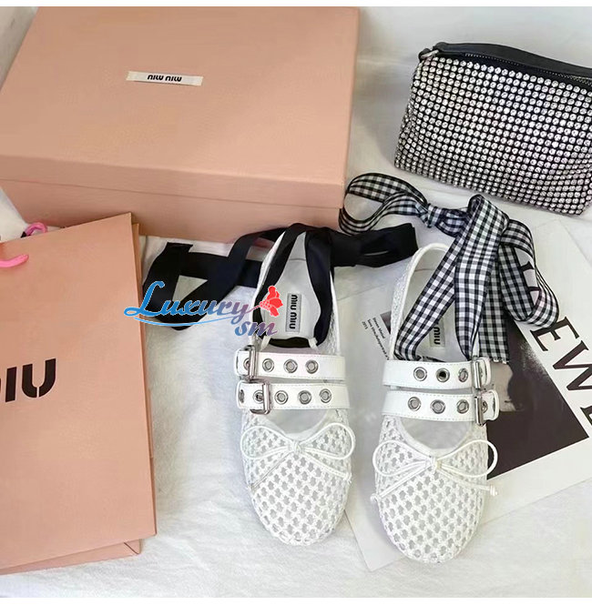 MIUMI*-5F737D 미우미우 화이트 마크라메 패브릭 발레리나