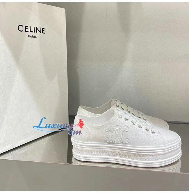 CELIN*-346272 셀린느 화이트 제인 로우 레이스업 스니커즈 여성용