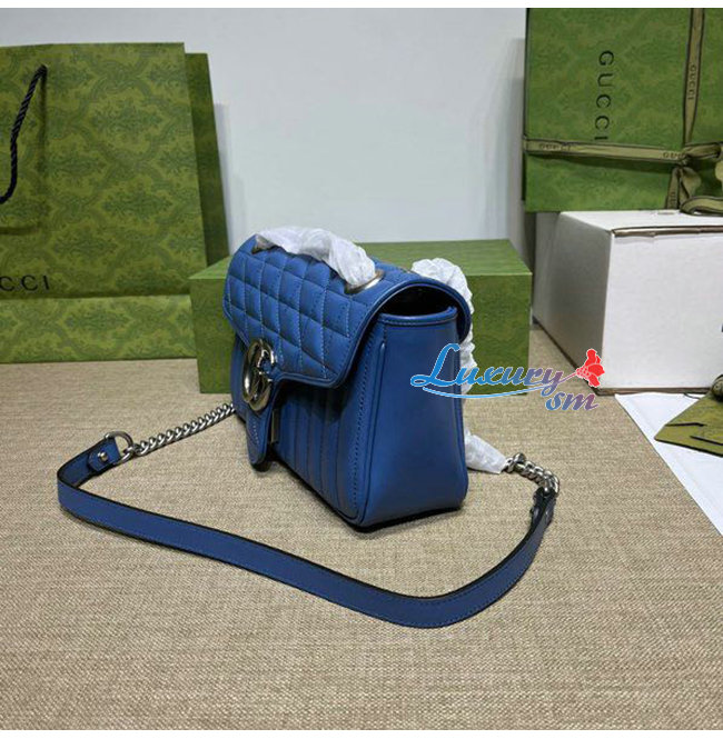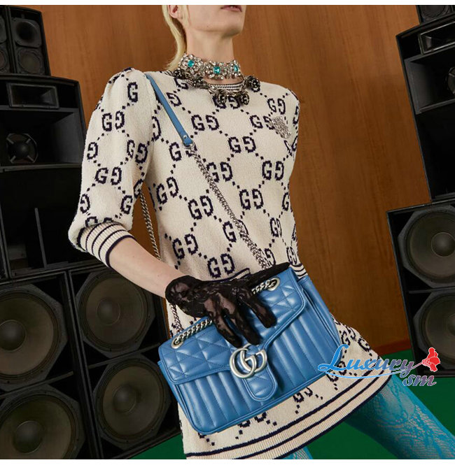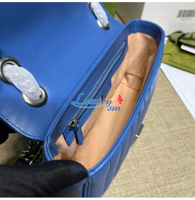 [스페셜오더]GUCCI-443497 4340 구찌 GG 마몽 블루 가죽 스몰 숄더백
