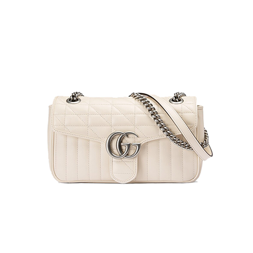 [스페셜오더]GUCCI-443497 9085 구찌 화이트 사선형 마틀라세 퀼트 GG 마몽 스몰 숄더백