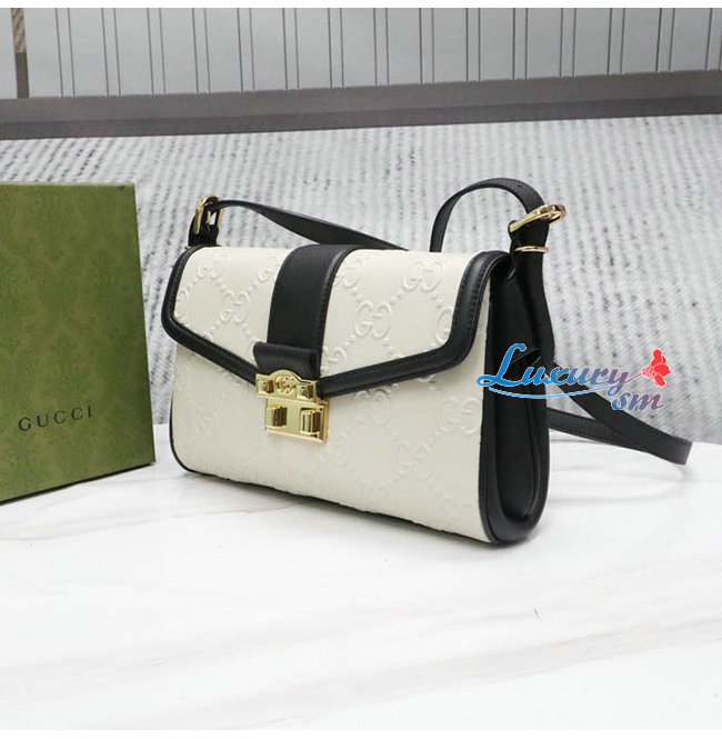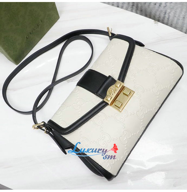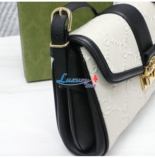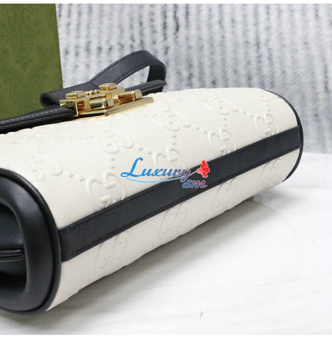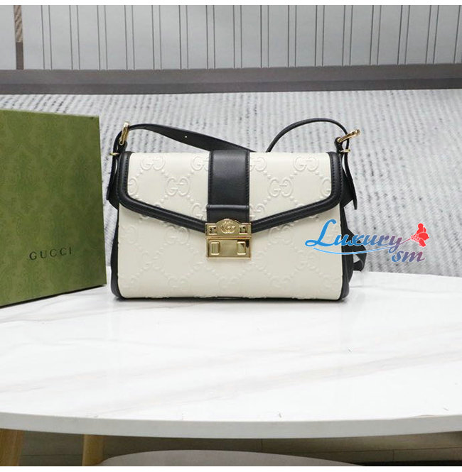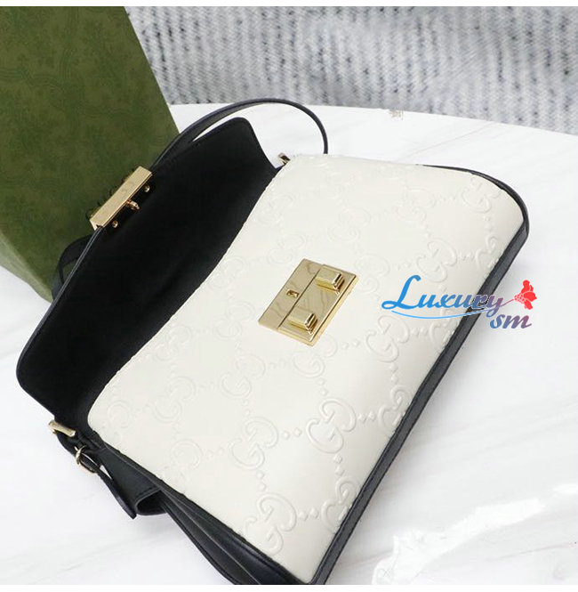 [스페셜오더]GUCC*-675778 9099 구찌 화이트/블랙 GG 미디엄 숄더 백