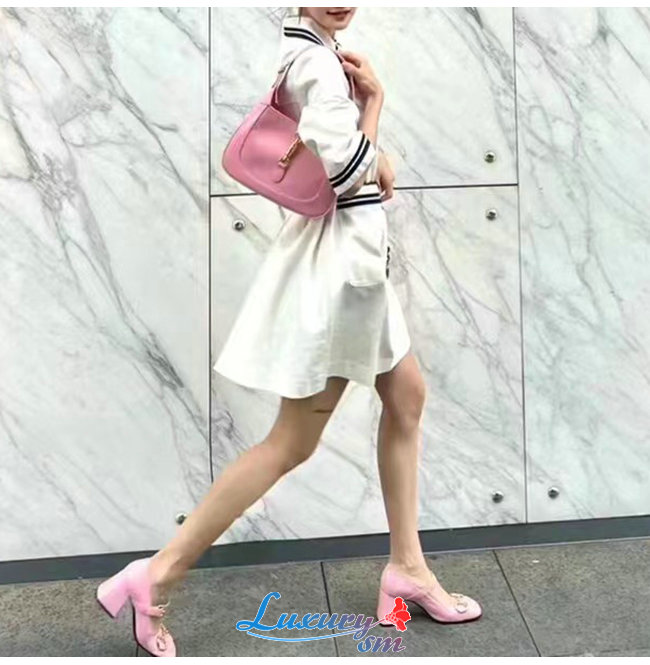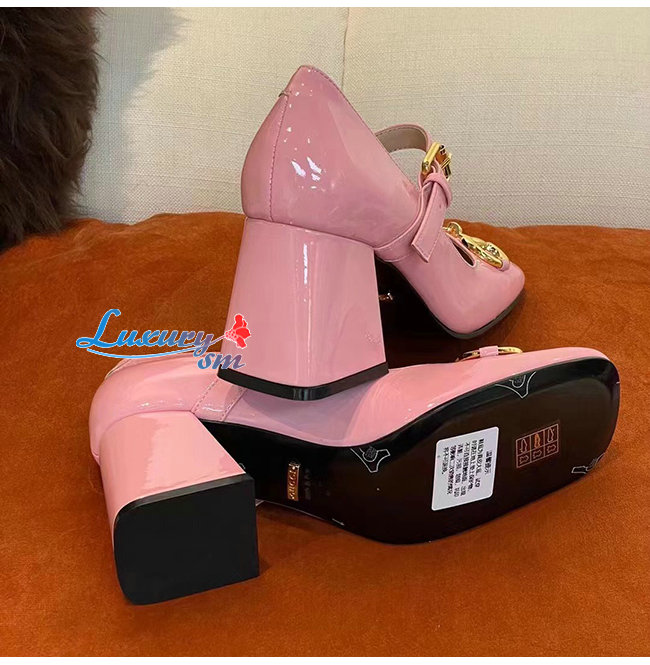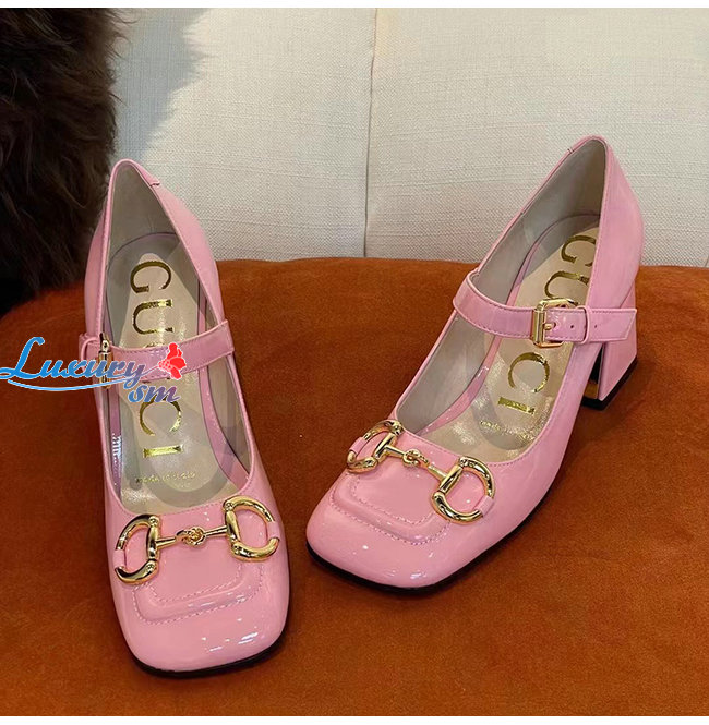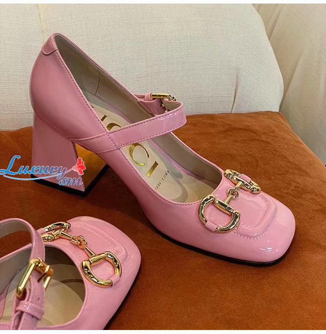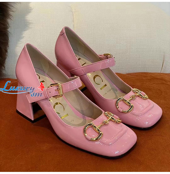 GUCC*-694885 5815 구찌 핑크 홀스빗 미드힐 펌프스