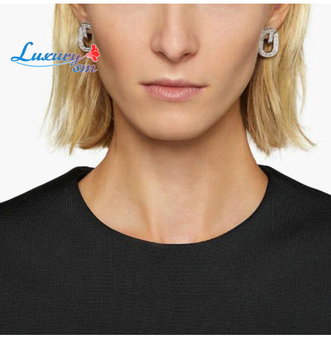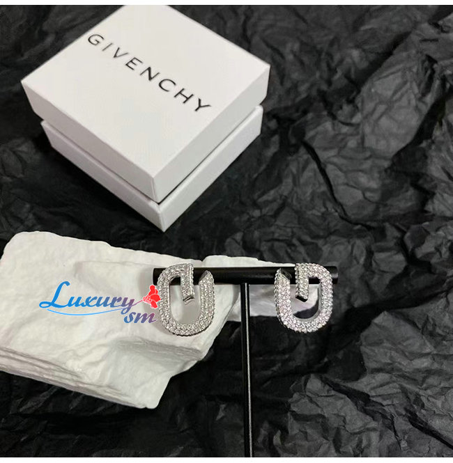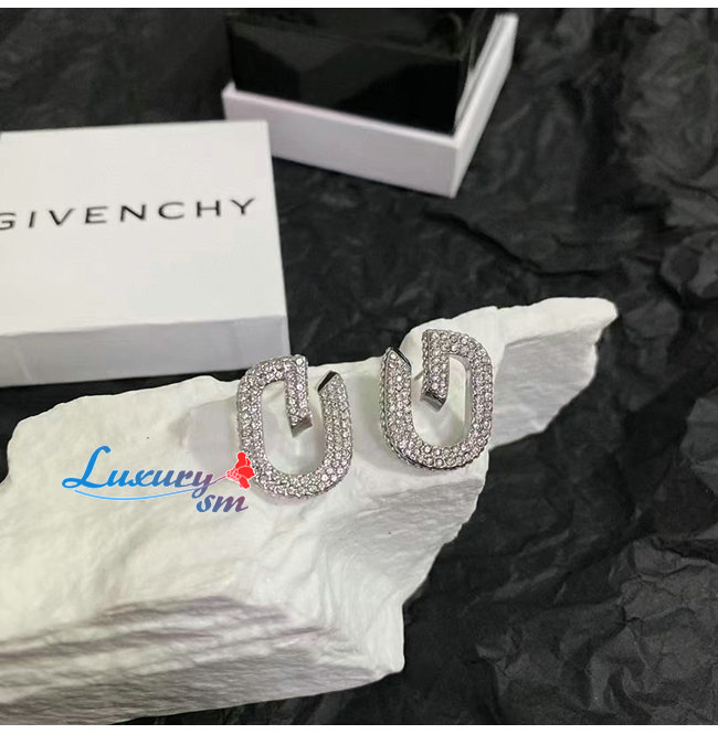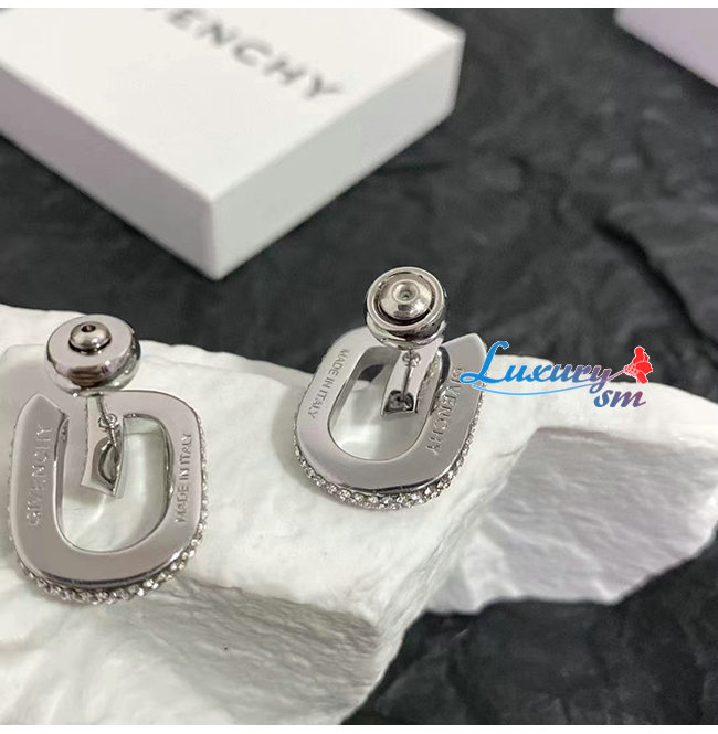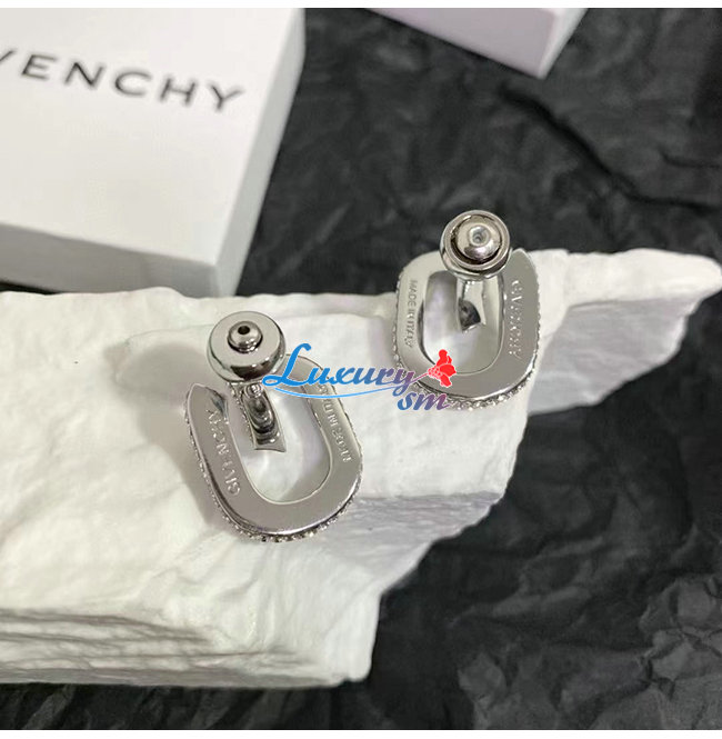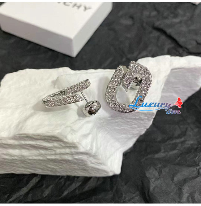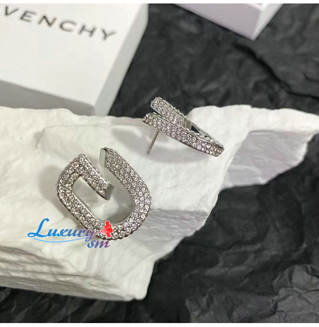 GIVENCHY-BF10MNF 지방시 실버 크리스탈 파베 세팅 G 링크 이어링