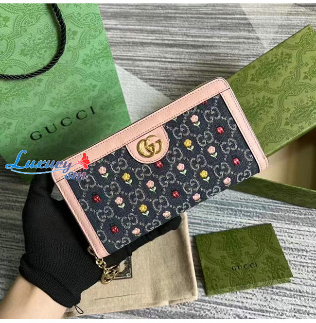 [스페셜오더]GUCCI-523154 8911 구찌 오피디아 핑크/블루 GG 데님 지퍼 지갑