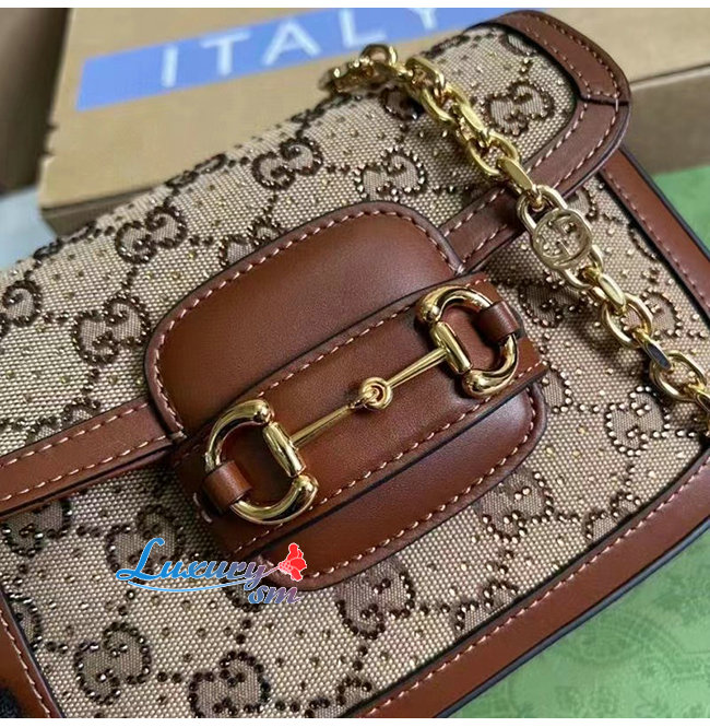 [스페셜오더]GUCCI-675801 2687 구찌 브라운 크리스탈 GG 홀스빗 1955 미니백